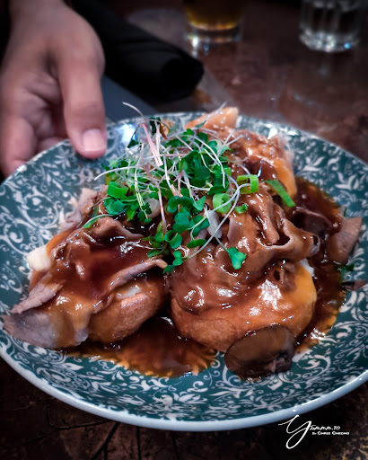 Our party of seven came for dinner on a Friday evening. We started light, by sharing some Focaccia, and Mini Yorkies (Yorkshire pudding cups, mashed potatoes, shaved prime rib, mushroom beef gravy).