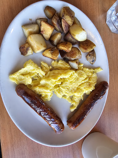 The food quality was atrocious, bacon burnt to a crisp, their 3 eggs scrambled looked like it was at most 1 1/2 eggs (not exaggerating) , and their "chocolate chip" pancakes was actually pre-cooked pancakes that had chocolate chips mashed on top burnt on the grill (didn't taste fresh at all, all the chocolate chips were falling off in clumps).