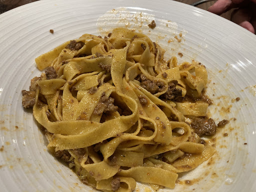 The food was good, but not spectacular. For the prices they charge, it should be spectacular. My pasta had Guanciale, which I have had numerous times elsewhere, and I was very disappointed… the pieces were so small that it felt more like I was eating bacon bits. The crispy skin on the porcetta was fabulous, but the meat was overly fatty. The venison ragú on my husband’s pasta was good, but lacking a little in flavor, although the actual pasta was delicious. The best part of the whole night was my husband’s tiramisu, which was homemade, and the cream on top was excellent. My cannolo was a little boring and the ricotta could have been fluffier.