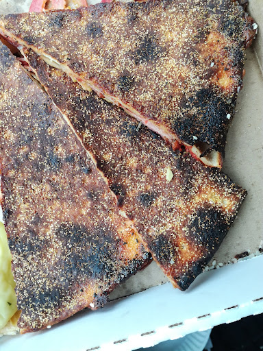After having to unfortunately argue my case, she agreed to replace...one of the two burned pizzas. This replacement pizza was also 15 mins late. Also half burned. If it's supposed to be a certain consistency shouldn't it be so on both halves of the pizza? Some responsibility should be taken for at least a very uneven cooking process. Photo is of the replacement pizza.
