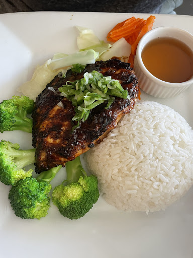 Ordered the Lemongrass Chicken rice plate with a side order of spring rolls. They come as 4 small sized rolls for an additional $7.35 but hardly had any filling in them. They don’t have the chicken and rolls together as other places usually have.