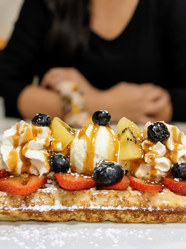 First the good: These waffles are better quality and better dressed (ice cream, syrups, sauces, fruit, etc.) than any I've had world wide, including Benelux. Belgium, Netherlands, nor Luxembourg have nothing on these guys, nor do the street food vendors in Bangkok, and that's saying a lot! They proudly use whole eggs which make a huge difference, but they have an egg white only version which they readily admit isn't the same. Coffee is excellent as well, being large, rich, served properly hot and to order along with food upon request so that it doesn’t cool off. Chef’s kiss here, for sure.