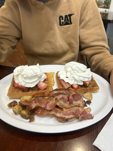 Read moreWe’ve recently moved to this side of town and stopped in this morning for warm breakfast on a snowy day. I had the small order of banana French toast which was amazing and very filling. The bacon was perfectly cooked; I usually don’t order restaurant bacon because it’s too dry, crunchy and thin but this was crisp but not overdone and a thicker cut. I added a scrambled egg and it was nice and fluffy. My 5 year old had the small sized classic waffle and it was a great serving for her (she has a big appetite) It’s a cozy little nook with mostly regulars (I can see why) and pleasant jazz playing in the background. Friendly service, fresh food and cozy atmosphere and reasonable prices; a small business I’m...