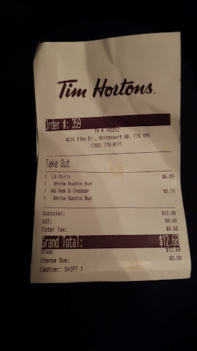 Read moreI was already trying to avoid supporting Tim Hortons as it was but decided I wanted a white hot chocolate this morning so I stopped in and got an extra large and a bagle. Got gas and then got onto the highway out of town and noticed the hot chocolate was spilling out the lid, which I hadn't opened yet. I tried to push the lid down but it felt like it was being pushed back up and wouldn't seal. I pulled over to find my roll up the rim was very clearly rolled up already and has teeth marks in it. I was already down the highway by then and didn't have time to turn around or be late for work. Absolutely will not be supporting Tim Hortons anymore, as this sealed the deal. I though this was internet nonsense but their employees are rolling up rims before selling you the coffee etc. Hot chocolate got dumped out because that's disgusting and I didn't even enjoy my half toasted bagel...