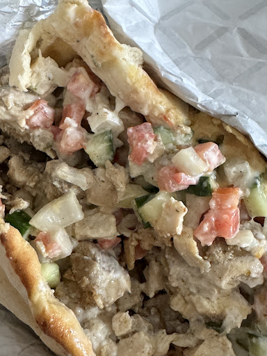 Another time, I ordered take out via doordash. My chicken shawarma large recipe is Tomato Cucumber Onions Tzaztiki Cumin yogurt Lebenese garlic Hummus. There were too much chicken, and the chicken had no taste at all. AT ALL. It tasted like there’s not enough sauce. I didnt taste the garlic sauce much. And the veggies is not much too. I was eating a shawarma that was mostly chicken and that shawarma was not good at all. The chicken also looked pale which explains it not tasting like anything at all. I have a pic attached and you can actually count how many cucumbers are in there and also it didnt look like it had the garlic sauce cause the garlic sauce should look thick and you can see in the pic the sauce looks runny.