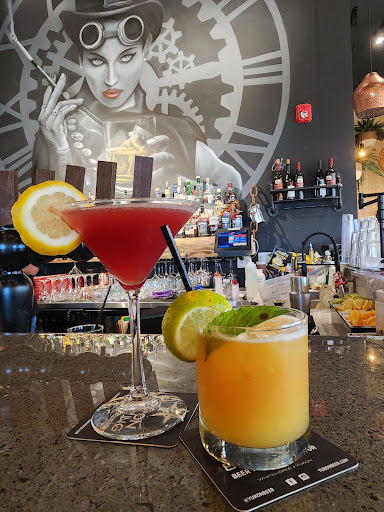 After some more waiting we were seated. The server came 10 minutes later asking for drink orders. We got two cocktails and the pretzel to start. The cocktails were great, and the pretzel was good too. Then we ordered the shawarma poutine and feta pizza to share.