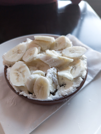 Atmosohere: The music is always a bit too loud, and the booth seats are too low for the tables, and there is no light at the front tables of the dirty if you're there during the dark winter. Outside light is fine in the summer. The hooks on the tables for hanging coats are too low so you're likely to leave with a dirty coat if you're seated at the long bar-style top in the middle. - not a problem in the summer! No need for a coat! ☺