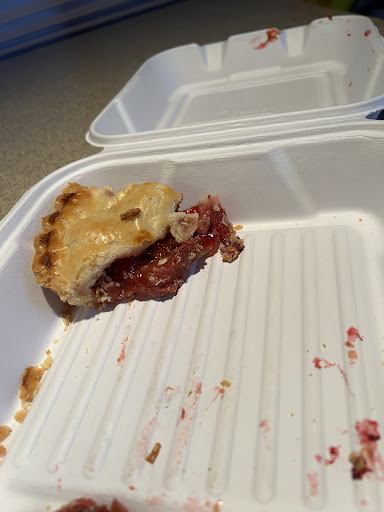 Discouraging Anniversary Experience Met by the hostess/manager? who seated us at a table directly in front of two toilets and the kitchen. We asked her if we could be seated elsewhere and she abruptly replied “no” that the other room would be hot. We decided to leave and she agreed to move us to the other room. We were silently reading the menu when she approached again and stated that we would not be allowed to move again. We were confused by her confrontational attitude and my husband politely said that we were just fine. We selected our meals and the waitress told us that we were accidentally given the wrong outdated menu and that we were going to have to select another meal from a new menu. We complied, the halibut was very good, vegetables under cooked and we finished and asked for our bill. We were taking a photo and the hostess/manager? offered to take one for our anniversary. As we were getting ready to pay the bill, she came by and asked us if we would like a dessert to go and suggested several. We chose a piece of berry pie. She brought it in a container and told us Happy Anniversary. The waitress asked us about the container and added $12.95 to our bill for one piece of pie. We were surprised, but just paid the bill of over $100 and left. When we arrived at home and opened the container, there was a very small piece of pie with very little filling—barely a tablespoon for almost...