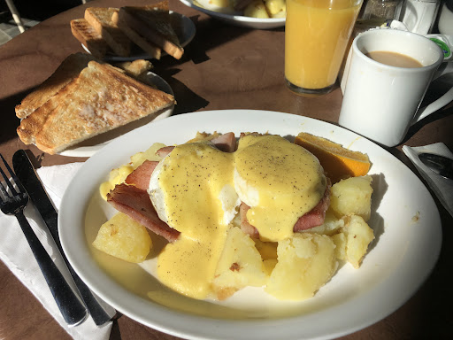 it gets two starts because the servers were very polite and friendly with out them would of been a no star experience. Came in there was 3 other tables in there 2 with food and one with out we were sat and ordered and a 6 top came in and another table of 2 ( both of thoes tables got there food before us) we ordered two orders of French toast for the kids and 2 benny skillets for the wife and I. Both hashbrowns were raw and cold i sent mine back wife was to nice. Yes after they came back they were cooked properly but after waiting an hour almost for breakfast we were just not in to it. Go to pay the bill to find out my breakfast was almost 70 dollars for a total of 4 eggs 3 cups of has browns and some French toast. Save your money and go to McDonald's was way over priced and food...