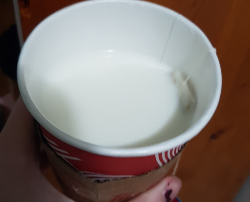 Then I get my drink. And it's no joke, half full. It's medium London Fog Latte, so there is two inches of foam to my maybe 125ml of tea. Super disappointing.