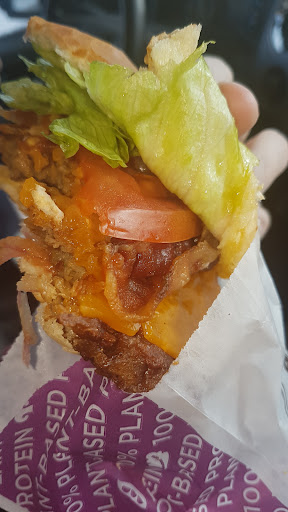 Despite their irritating ads, I still think they have the best Root beer and the teen burger is still the best generic style burger you can get. But we wanted to compare apples to apples, so we figured the Mama burger was the closest in size, condiments and general content. We split every thing and compared the two burgers for taste, mouth feel, consistency, looks and general effect. I must say that I am pleasantly impressed. The burger lives up to its hype. It was different in the side by side with a meat patty but not "oh it's a veggie", just slightly different. Pleasant flavour, good texture, and all in all a really nice burger. It went well with either fries or onion rings (well, of course I guess) and I would cheerfully chow down on another one if it were a bit cheaper. I also have not checked the fat, sodium, trans etc content which will have an effect on how often I would even consider eating them, but a really nice treat that you can take your non-meat...