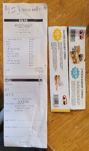 Ā Ā Ā Read moreThe worst staff and experience that Iāve ever had in an A&W. Slow would be an understatement. My sausage and eggers were barely warm as were the hash browns. My wifeās mozza burger was stone cold and she was served half a cup of the wrong coffee. When she tried to get the drink replaced she was given another drink entirely and the one she tried to return. I have never had an experience like it at an A&W and will never return to this one again. Customers were lined up attempting to return incorrect orders and cold food. There should be an option to give a zero star rating as this restaurant doesnāt...