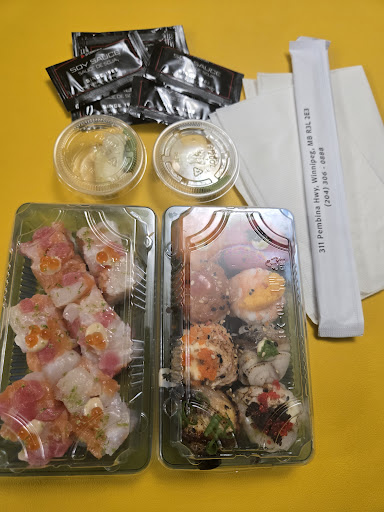 Take out from Aburi Sushi Restauant in Winnipeg, MB. Lovely flavour combinations. Quality ingredients. Enjoyed it. The aburi sushi was not torched, or seared, there is no imitation crab nor avocado. I saw a photo online and it did not look seared/torched. Hmmm. Well, unable to completely provide a complete review. The lemon marinade was a delightful touch. Quite disappointed with the lack of ingredients as listed on their menu. A tasteful and presentable dinner, even after a 20 minute drive back home.