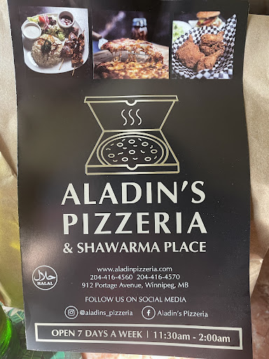 Read moreAladins, what is it not. The 8th wonder of the world, the place where when you take a bite, you have to breathe and reflect. I once bit into the pizza and uttered the words "God Bless America" on reflex, it was that good. The cupids arrow of creamy garlic sauce, the breathtaking artisan alfredo, the five cheeses that sends you back to those glory days. The United Nations meet to discuss, the whole new world that Aladin was singing about showing us. The personification of home in the crust it stands on. The emotion of better days with each drop of sauce.