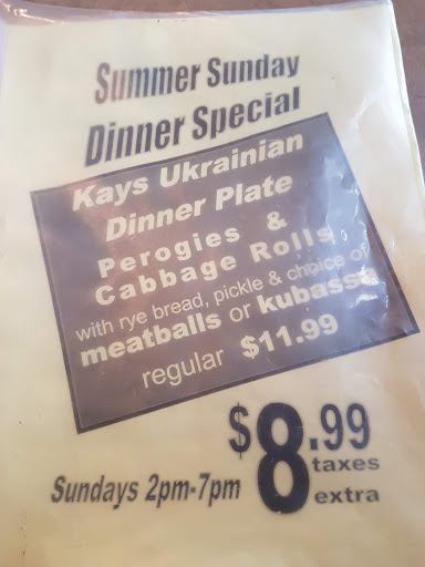 As for food, pretty much the only Ukrainian things about it are sour cream and perogies. Other than that, it's typical Canadian lunch and breakfast.