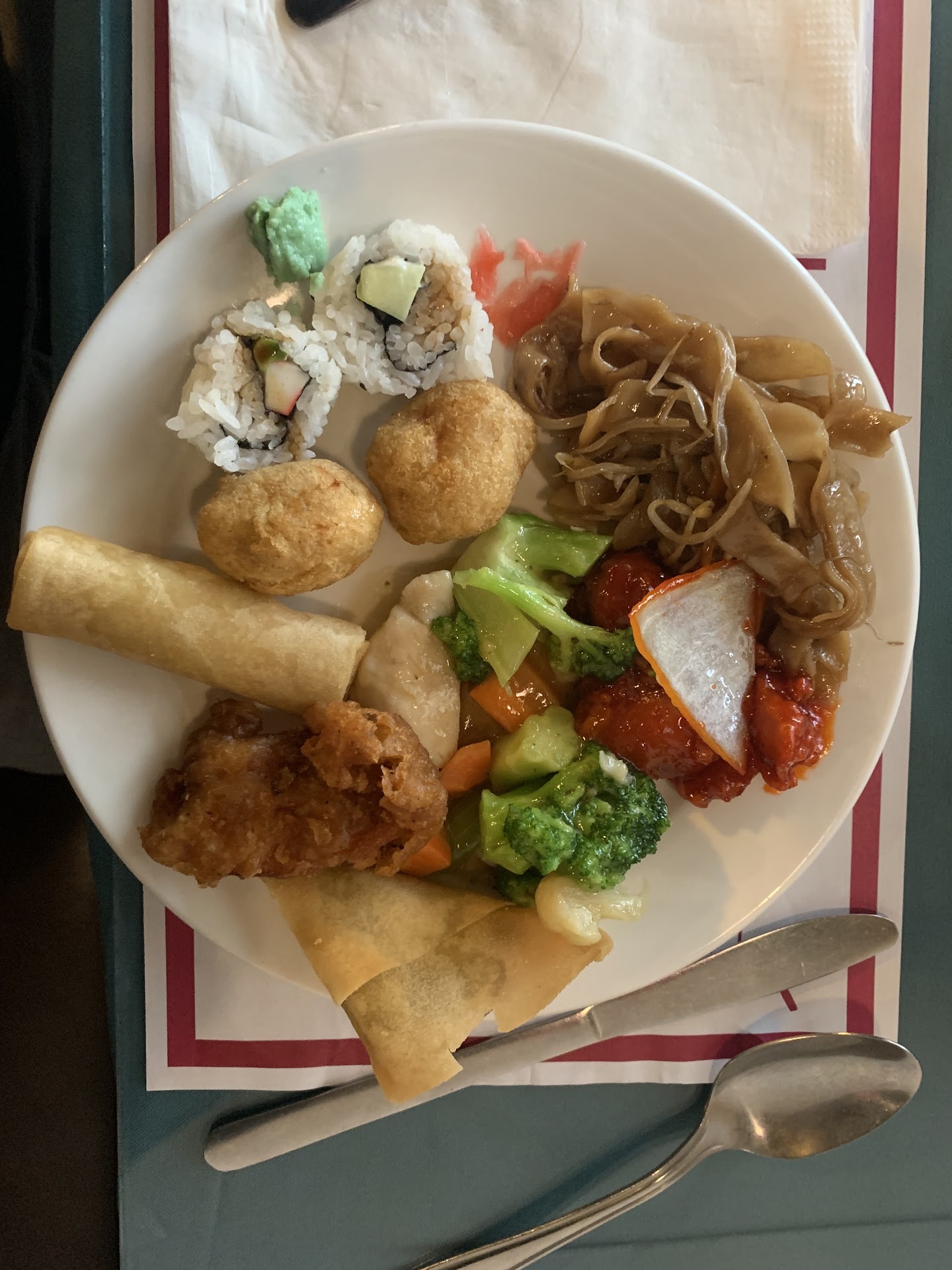 Read moreJust ok. Pricing is on the cheaper end especially for dinner hours, but you pay for that in reduced food quality and limited variety. The only real standout items were the lemon chicken and crispy chicken, everything else was just average, some subpar. I can accept that you are effectively paying to sit down and eat catered Chinese food, but when things like the dessert selection consist primarily of store-bought box cookies and bear paws you have to wonder if the tradeoff is worth it. Might be worth the lower price for some if you are trying to pay $20 to eat all of your meals for the day in one sitting, but if you are looking for a one off dinner for a rare occasion I would say you're better off biting the bullet and trekking down to St. James to go to Ye's Buffet, even if you have to wait for a table there. One thing I will say is they have a pretty decent selection of soups here which most buffets don't bother with. If that's your jam you might find this to be a silver lining that brings you back. It's also unfortunate that you have to pay extra for soft drinks but the prices are low enough that it wasn't a big deal for us.