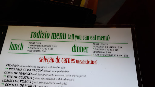 Read moreI keep seeing reviews on how wonderful the service is here… My group personally did not experience good service. The way things were explained to us is that we could order as many sides as we liked because they came with the meal. Each couple proceeded to order their preferred sides but the server only brought out one tiny bowl of salad or cheese balls or mashed potatoes or dips or fries…. to be passed around the 8 of us and shared family style?! The 4 sets of couples ordered 4 salads to share between them and you bring us one dinky little bowl? This is definitely not right. So we had to keep ordering salads (and other sides) and every time there was a long delay in getting it. So ridiculous… you really should have just given each couple what they ordered. It actually caused a lot of confusion at our table because everyone was looking for the sides they ordered but we were served only one small bowl to be split 8 ways! Part way through my meal I needed another drink because the meat is EXTREMELY SALTY but couldn’t track down our serving person. I asked several other staff close by. It took me 30 minutes to get a pop! I could have walked in the kitchen myself and gotten it quicker and to top that off the pop cost a whopping $4.75, talk about gouging the customer!! Initially when ordering our drinks our server made us yell across the large table to her rather than walking up to people at our table and that definitely wasn’t appreciated. I found some of the meat to be tough, burnt and chewy and for the price we paid for our meal, it plain and simple should not have been. They also cut off unmanageable sizes that were hard to cut through. We also didn’t get to try all the various varieties of meats despite asking several times when something will be available, as well as being there a long time so there really was no excuse for this. At one point I felt like our service was terrible because our server was guaranteed her 18% tip because we were a group of 8, so therefore she didn’t have to put as much effort into serving our table. This place has a hefty price point and it’s not...