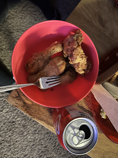 And donât even get me started on the feathers still attached to some of the chicken pieces in our order!