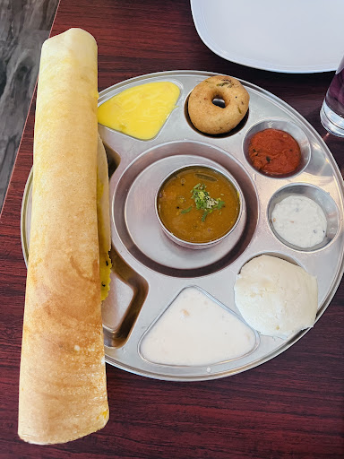 Read moreI was Driving across Canada with my family and stopped in at Lenscrafters @ Polo Park and I had to get a new prescription because I lost my glasses (Velma lol). I asked one of the workers for a recommendation for Indian food and was told about this place and specifically was recommended the samosas. The worker told me that every time her husband leaves town she buys this as a comfort food. Her being comforted by this restaurant told me enough that it was worth trying. We got an Indian platter which was delicious, the garlic naan was great and the samosas were huge and delicious. My wife said the Tamarind sauce reminded her of how her grandma made it and because of this we ordered an extra larger order to bring back home to Ontario with us. The Atmosphere of the restaurant with the beautiful art murals to Indian Cultural monuments and Hindu/Buddhist Gods make it a very welcoming. There was this waterfall thing with cups that made sitting and waiting for the takeout order feel relaxing. My Kids also got Chocolate/almond ice cream and me and my wife got mango smoothies and they tasted great and were loved by all. Our order 2 mango smoothies 2 Chocolate/Almond icecreams 2 garlic naans 8 Samosas and Indian platter with 5/6 different things. I just want to thank the kind servers, the great cooks and the word of mouth that introduced this place to my family...