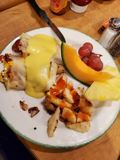 Read moreI am being generous with theses ratings. I had gotten an eggs benedicts meal which came with mushrooms (i asked for none) and no spinach, they gladly switched it for me but when it came back my food was so bland, i couldnt eat it. My sister had got a Jessica meal, she asked for her eggs cooked over medium, which the waitress clarified when the food came the yolks were so runny and same with my pouched eggs on the eggs benidict. The waitress never came back to check on us the whole time and our waters were empty, till we were about to leave then a different waitress dicided to bring us some, we didnt speak to our original waitress again. We also watched our food sit on the counter for a while well many waitresses were walking by, slow service. I would not recommend eating here, this my first time being there and definitely my last. Last but most definitely not least, we found a piece of fatty BACON in the sugar holder, as if they were trying to prank us this whole time, but we were not in the mood for jokes. In the end the waitresses were kind and the crepes and...