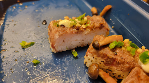 Read moreWhat the hell is this portioning? I understand it's wagyu, but come on, this is thinner than a strand of hair. It's like the cook just grinded the meat into shavings and slapped it on rice and called it sushi.
