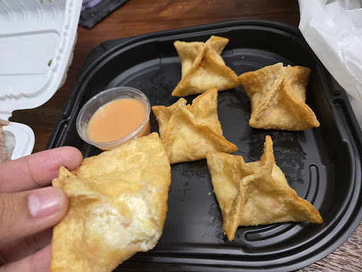 We got Taro slush and chocolate slush w Boba, Crabrangoon, egg fried rice w BBQ chicken, and Satay Pho..