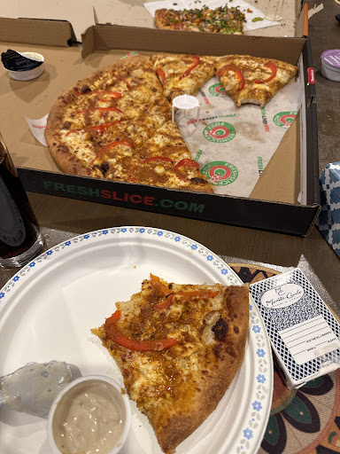 This is the ONLY good place I know in this city where you can get incredible quality pizza by the slice, besides Flying Pizza. But this place offers a great variety, some unique flavors, and giant slices for $3 to $3.5. My favorite from them is the butter chicken pizza. I've tried every type and they're all delicious!