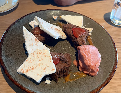 What an amazing evening! We celebrated our anniversary at Gather this evening, and all I can say is "WOW!!!" The food was incredible, every dish is carefully crafted to bring out the best of every ingredient! We started with drinks: The Lawnmower and the Lavender Lemonade. These were both amazingly fresh and full of flavour! The tequila in The Lawnmower shone with the elderflower, lime, cucumber, and basil making the drink light and summery. The Lavender Lemonade is a beautiful shade of purple and is such a perfect balance of tart and sweet. For appetizers we tried the Saffron Gnocci which was bright and summery and was perfect for sharing! We also shared the Chorizo Spiced Vegan Tacos that come with the Butler Soy Curls, which we had never tried before. Being pescatarian, this was a great taco protein and we will definitely be back to have these tacos again! There was so much filling and everything was delicious and complimented all of the flavours! Our entrees were the Spanish Prawn Pasta which was served on a generous portion of Nature's Farm linguine and was so delicious! I couldn't finish my portion so that I could make sure to have room for dessert 😋 My husband ordered the Coconut Korma Curry that was plated beautifully and he said was one of the best curries he's ever had! Finally, for dessert we ordered the Ginger Lemongrass Creme Brulee and the Brioche Bread Pudding. This was one of the best creme brulees I've EVER had! The Bread Pudding was decadent and delicious! To top off our night was our server, Jenny T. She was incredibly attentive while giving us space to enjoy our food. Her professionalism and friendliness was such a wonderful addition to an incredible evening. My only disappointment (and reason for 4 stars on Atmosphere) is that it feels like the tables are just a BIT too close together, although I was grateful that the table closest to us wasn't seated until we had already ordered our desserts. All in all, this was a tremendously enjoyable evening and we will...
