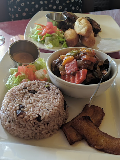 My favorite out of the items we ordered was the jerk chicken. It was not spicy, but we were told later that we could have adjusted the spice level. We did recommend that the server let us know ahead of time for those that are new coming in. The ox tail soup was good. The rice and peas (which are actually beans) were bland, however if you eat it with something more flavorful such as the jerk chicken or the oxtail it balances out. My one disappointment was the amount of plantains given which was two pieces as a side. We did speak to them about how it didn't seem balanced and the price point appears high for that. If it was priced better it would easily be a go to.