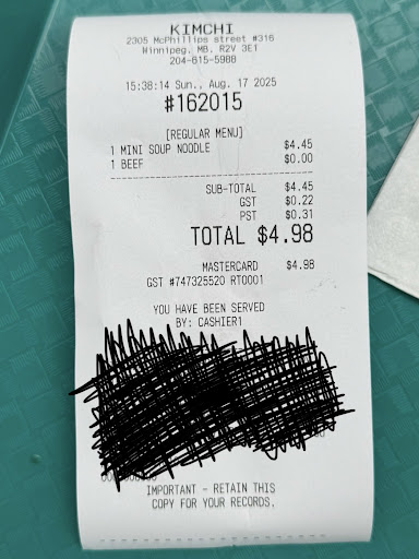 Hi! I bought Kalbi (mix) at Kimchi Garden City, Winnipeg on May 15 around 11:30 am. I want to commend the staff who attended and prepared my food (I wasn’t able to see their names as I wasn’t wearing my glasses that time). They offered help when I can’t decide which ones to order. After lunch, I cleaned up our mess and threw our food containers. Little did I know that one of the staff saw me throwing our trash and he asked my husband if I didn't like what I ordered because I threw some leftovers. Just so you know, I didn’t throw any leftovers as I didn’t have any. Kimchi is one of my favourite food stalls in Garden City and whenever I crave for Korean food, this is where I go. Kudos to the staff at Kimchi...