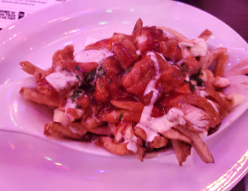Ordered "small" Montreal Smoked Meat Poutine, without spicy mustard cause I'm not a mustard guy and it was great. My date got the same thing but with mustard and the fries looked a little bit drowning. The bowl it came in was dressed with shaved bits of the smoked meat and topped off with a breaded pickle on a pick. While eating it, I could not tell if the meat was salty or the gravy was. Very tender, and thin cut fries. Takes a bit of technique to get the ratio of fries to meet right but it's already so delicious half way through.