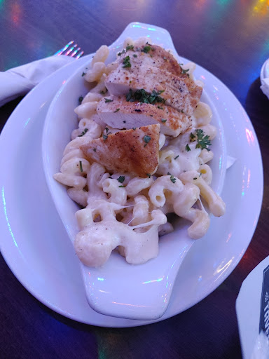 We shared "small" nachos with the blackened (seasoned) chicken add-on. This was the biggest plate of nachos that I've ever seen categorised as small. It was a mound maybe 4" high. the nachos were reminiscent of La Cocina chips and were just firm enough to support the cheese and adornments but forgiving enough to soak in them and get soft but not turn mush. The chicken was really good but not worth the $4.50 extra.