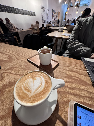 Met the owner again of this incredible gem of business. A coffee lover and connoisseur. Passionate and humble. A supporter of local artists. I love the handmade furniture. I ordered a cortado, he smiled because its not on the menu, and he kbew exactly what I wanted. Perfect amounts of espresso and milk.