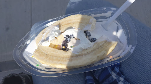 Read moreA banana split. Think about what that is. I ordered a banana split then was asked what ice cream I wanted during a very busy line up. I wanted a standard banana split so I just said chocolate vanilla and strawberry like a normal split. Then was asked which topping I wanted. So I chose some peanuts and score bits and oreo. Then my wife says she wanted the strawberry sauce pineapple sauce and chocolate sauce. Then the person making the split says you only get three toppings. Like I want a standard banana split. You should know how to make it based on the photo you have. He also cut his finger when cutting the banana and i watched as he was making sure he wasn’t bleeding. Not interested in blood as an additional topping. A banana split comes a specific way. If I want to change it I will tell you. But it comes with chocolate vanilla and strawberry ice cream. Peanuts chocolate sauce strawberry sauce and pineapple sauce. With whip cream and a cherry. Anything else is extra. Learn to make it!!. It should come with all those ingredients as a standard. Terrible service. Dirty tables. They do not accept cash. Way too expensive. Staff dont know how to serve people. No training. Won’t go...