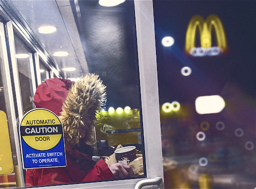 This McDonald's on Main and Mountain, the scene typically resembles a bustling battlefield of lost souls and apathetic or disbondant staff, hardened by years of heart-hurting exposure to the city's most depraved and heart hurting wanderers, coalescing there with the brave good citizens or hungry neighbors who've made the decision to take the leap and enter this battlefield. The clash of hungry customers and frazzled staff creates a tragic comedy of Shakespearean savagery, chaos worthy of its own headlining billboard.
