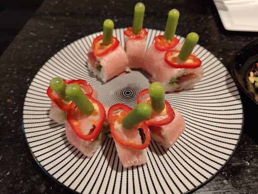 Read moreCame in with a friend last night and ordered a couple things each. The restaurant tables were about half full, and we waited a few minutes for the waitress to clean us a spot. After we ordered, she came back to say the restaurant ran out of regular sushi rice and asked us to accept the black rice in its place, which was okay. However, I ordered the Shroom roll and recieved a different one, I think the one above it on the menu, veggie supreme or something. I clocked the mistake right away, as the roll had peppers inside and I can't eat peppers at all. I wouldnt have ordered something with peppers, and I double checked the menu. I asked the waitress about it immediately but she insisted that was the Shroom roll, despite it not having mushrooms and very obviously having bright bell peppers in it. Unfortunately, my friend and I were in a rush and that was the last item to come out of the kitchen. Since we had time constraints that we didn't plan out very well (our bad), I didnt feel like I had time to argue and just put the roll in a box and took it with me, even though I wont be able to eat it. The rest of the food was pretty good, nothing super special. I wish the waitress would have looked harder at the roll and/or considered what I was saying when I pointed out it was wrong. She just said, yup thats the shroom roll, there are lots of veggies, the mushrooms are hiding in there somewhere. 12+ dollar mistake on me and a waste of food. I would be hesitant...