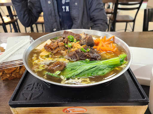 Looks are deceiving. I ordered the chicken wonton. I was asked if it was for inside or to go. I replied inside, but we were served in a small plastic bowl. Then the other customers after me were served in an appetizing hotpot style dish. The chicken was terribly dry, the wonton was flavorless and dry as well. There were only 3 pieces of dry chicken breast and 2 pieces of wonton. The mushrooms were hard and cold. There was an overload of noodles and they covered it up with roasted garlic. Very disappointing for a $13...