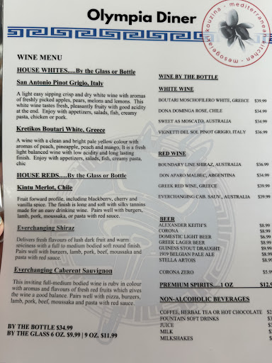 Read moreI rarely post negative reviews, and always try to find the positive in an underwhelming dining experience. But when you're a neighborhood institution, I believe the owners and management need all forms of feedback to ensure quality and consistency. I'm by no means a regular, but I've been eating at Olympia on occasion since the early 2000's. They can be a little hit and miss, but generally can be counted on for a satisfying meal. This evening I ordered the Keftedes (meatballs). The first one I cut into, I noticed the meat was very pink. You can have some pink if the temp is right, but I immediately touched it and it was completely cold and felt uncooked to the touch. At he very least a kitchen needs to prepare food safely. I sent it back, citing why. The server felt bad and asked if they could make it again. I was already turned off and politely declined. I didn't order anything else. If the glass of wine I ordered had been decent, it may have saved my overall satisfaction with my visit but it tasted like the bottom of a box wine that had been open for several weeks. In the end, they brought me the bill for everything, minus the Keftedes. I am not looking for a handout, but if I was the manager on staff that evening I would of at the very least comp'd the wine and potentially the appy (calamari, which was done much less good than the last time I ate there), if not the entire meal. Olympia is a St.James institution and has passed on to new owners in recent years as far as I know. I still like this place but feel like tonight showed that there is a lack of management ensuring the overall quality of their patron's visits to this...