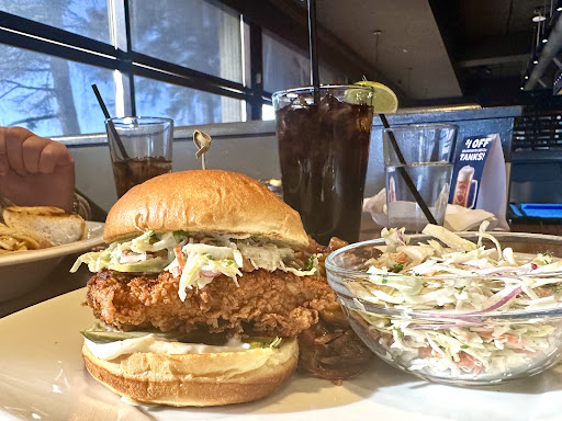 My fiancé and I came here for dinner this evening around 7:30 pm. We were greeted promptly seated by a gentleman who I think was the manager. Our server was Cassidy. She was friendly but not very knowledgeable about the menu and made several mistakes that thankfully the manager caught. I have a gluten and lactose intolerance which I informed her about. I ordered the Cajun chicken burger with a gluten free bun, mixed green salad and fries with dill dip. Prior to the salad coming out the gentleman who seated us came by our table and asked if I still wanted cheese on the salad since I asked for no cheese on the burger. This surprised me since Cassidy neglected to mention that the mixed green salad contains goat cheese. When my burger and fries came out the gentleman came back and asked if I have a dairy allergy. I said yes and he then informed me that the dill dip I ordered contains dairy. This made me angry because I specifically asked Cassidy if the dill dip contains dairy and she said “no, it’s mayo based.”