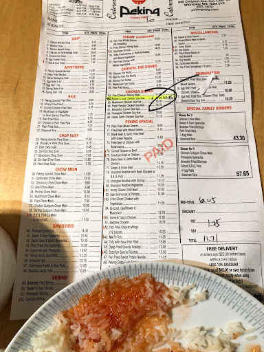 Read moreI have always enjoyed ordering from Peking. Tonight was a different story. I ordered food to pick up and ordered online. There is an option when you order online to choose the time you would like to have your order ready for. I placed my order at 4:00 pm when I had a quick break from work and asked to have it ready for pick up at 5:30 pm. I got a text saying they had received my order and it would be ready at 5:30. I was extremely surprised when I then got a text at 4:40 stating my order was ready. I phoned the restaurant to ask why it was ready 45 minutes earlier than I had requested per their website, and they just stated they make the orders as they come in and they would keep it warm for me. I asked why they had the option of choosing the time if they didn’t adhere to it and they didn’t really have an answer beyond saying they were busy. So my order sat until I was able to pick it up at 5:30 and it was all cold, the spring rolls were completely soggy and it was very disappointing. Spending 88 dollars on cold unappetizing food was ridiculous. I will not be ordering...