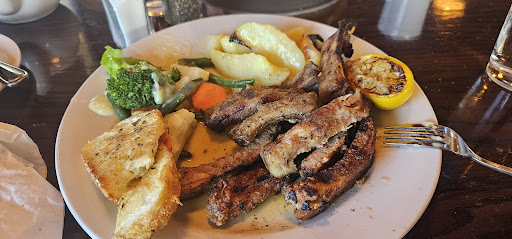 Read more2 of us went on an early Saturday aft for my mom's bday dinner. We both decided on the full rack Greek ribs meal for 38$ and an unknown up charge of 4$ for a ceaser salad total $42. Unfortunately it was probably one of the worst rib meals we ever had. The "rack" of ribs came precut which I am not a fan of to begin and was surprised. The lemon potatoes were not dry and were the best things on the plate. The veg was under cooked and cold and the ribs were terrible. Once some food was moved around you could tell that the plate was placed under a salamander to heat up as the ribs were charred and tasted burnt, as well there were 2 potatoes that were black on top due to the intense heat from the top. You can see some char in the picture but there are a few pieces that are more charred under the ribs and there is a second potato in the back that is fully black but unable to see in the photo. The ribs were dry, chewy and basically had to knaw off the bone. The flavors of the char is that acidic burnt lemon flavor that you get when you burn lemon...it was very unpleasant. I am never one to leave food on my plate but neither of us ate 1/2 of what was there. We were asked a few bites in if things were OK and at that time we basically ate the potatoes and seemed fine. The plates were cleared hardly eaten, and had mentioned that the ribs were burnt and an apology was given and that was the end of that. This review is mostly for management to take a look at what is being put out . Clearly these ribs were old, dried out and reheated until burnt in a manner that you could clearly tell was inappropriate just by looking at the plate and smelling it. These were definitely not fresh ribs! When you pay 100$ for 2 dinners you would expect some...