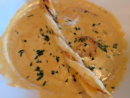 We started with the French onion soup and Coquille St. Jacques, both of which missed the mark entirely. • The onion soup was murky and lukewarm, with a powdery broth instead of the expected rich, clear consistency. Despite a warning that the bowl was “extremely hot,” it wasn’t. The Gruyère was fine, but the croutons had disintegrated by the time it reached us. • The Coquille St. Jacques was particularly unpleasant—a strange, overly earthy mix of mushrooms and pearl onions, giving it the texture of ground meat and an oddly liver-like flavor. The two small scallops and unexpected shrimp (not mentioned on the menu) were lost in mashed potatoes. The dish lacked the typical wine-infused brightness and tasted more like a misguided shepherd’s pie.