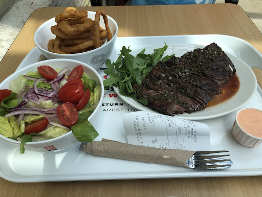 Read moreI came looking to try out their 16OZ NY Striploin, however their menu has been recently updated and this is no longer offered. At the cashier's recommendation, I went with the 16OZ Bavette (flank) Steak.