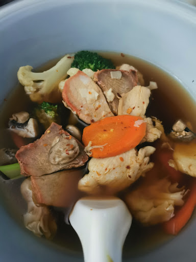The chicken on rice dim sum bowl was ok. Could probably do with a little more steaming with the lid off as the steaming liquid was still in the rice, so it seemed too wet. This is the first place I've been to that uses those metal steaming containers rather than clay pots or actual bowls.