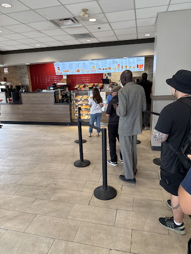 No matter how busy it is at this location, and there seems to always be an endless line, the staff never show their stress. They just work quickly and efficiently. I've never heard them be rude, never seen them falter. They always just get the orders taken and out in the fastest manner they can manage. I'm always impressed.