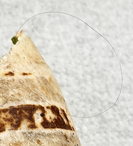 Read moreI was on my way to work & had picked up a slow cooked chicken wrap with a Large Double Double. On my first break I started eating my chicken wrap & was thoroughly disgusted when I felt a hair in my mouth & discovered this curly hair in my food. I ended up throwing out my wrap with not eating anything on my break. I contacted the 1-800 number about this incident & received an automated reply apologizing for my inconvenience & hoping that I would give Tim Hortons another chance. Excuse me?? Why would I? I did not receive any reimbursement for the money I lost due to buying food with hair in it. Come on Tim Hortons, you could do better. I am so disappointed also because this location is on my way to work and I regularly went through the drive thru.
