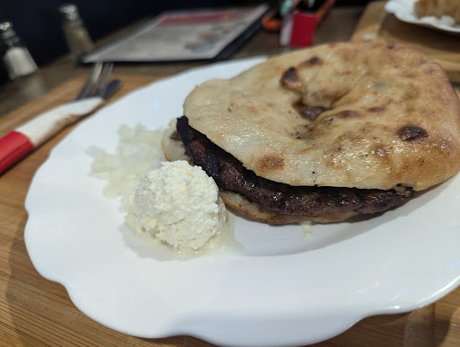Shortly after we sat down, the male owner approached and asked directly, “Do you want ćevapi?”—the staple grilled dish—without giving us a moment to explore the menu or consider other options. We politely declined and opted for burgers, but before we could ask for fries or salad, he had already disappeared into the kitchen. When he returned, we asked about fries and were told it would be “at least fifteen minutes.” We were happy to wait, but the rushed and fragmented service made for an awkward dining experience.