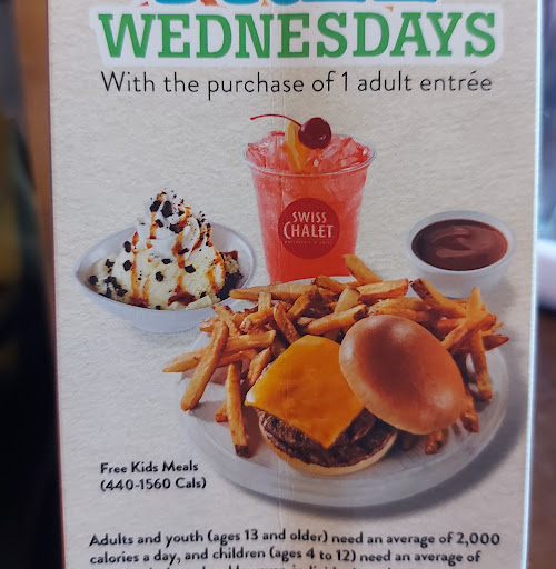 Read moreMy husband and I dined at the Woodstock location last Sunday evening and to say we were disappointed would be an understatement! We arrived at approximately 6:30 and waited in the lobby for several minutes before finally a hostess came to seat us. The restaurant had several available tables, and we watched several employees standing around chatting but ignoring us at the door. We ordered an appetizer and our entree in a pretty timely manner, however a couple that arrived about 10 minutes after us, were seated, and served their meals well before we were served our appetizer. I didn’t know Cheesy Garlic Bread took so long to make! When it arrived, it was nothing like it used to be. It had dried out ends of the loaf which were barely chewable, and toppings were very minimal. The kitchen staff, not our waitress “Terri Anne?” Brought the bread to our table, we had no side plates nor a bread knife to cut the bread. We asked the kitchen staff if she could get us some and she quickly did. Our waitress never asked if we wanted refills for our drinks or check in to see if we needed anything. One waitress that we’ve seen there for years, did however get us refills when we flagged her down, and brought them with a smile. We also got the lovely additional side show of listening to the group of waitresses bicker back in the corner, for most of our dining experience. The entres were okay, at least they were hot. The French fries were tiny 1 inch bits, no really “fries”. It has been several months since we had been to this restaurant and it will be a very long time, if ever, that we visit again. Sorry but I will travel to Paris for a much better Swiss Chalet experience...