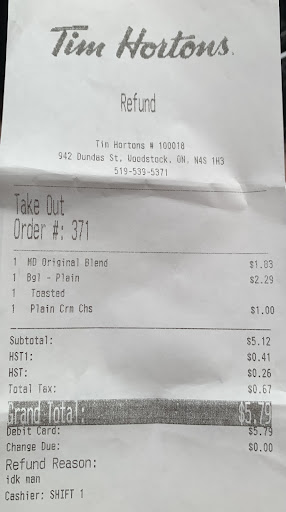 Read moreI went to get breakfast at Tim Hortons and asked for scrambled eggs only no meat or hashbrowns. They charged me $5.75 and put hashbrowns in it. When I advised I couldn't eat the hashbrowns the lady at the front counter started yelling at me and telling me I don't know how to oder the food properly. When I asked her what I should have ordered instead she said "well we don't have only scrambled eggs, you have to get the hashbrowns with it." When they went to correct my order and just give me scrambled eggs they gave me the smallest scoop of scrambled eggs. I asked them if that's the usual portion and again the lady started yelling at me and this time so did the girl making the food. She told me that that's what they are giving me and that I'm being difficult. I then asked for my money back because I'm not paying $5.75 for a small scoop of scrambled eggs and to get yelled at by two staff members. It was a horrible experience and won't ever go back. Another person in line told me they shouldn't have yelled at me like that and should have been more accommodating. I felt so embarrassed, definitely not a good atmosphere and the service was horrible. No one should ever get yelled at. I've worked at Tim Hortons, McDonalds and other fast food places and I know how crucial it is to give great customer service every time. This location has definitely let me down and I will not...
