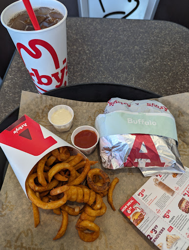 Read moreInterestingly, there isn't any Arby's around GTA (as of Mar 2024). This was my first time trying Arby's and its location is nearby the St. Jacobs Farmers' Market. I know Arby's is most famous for its roast beef sandwiches but it's not really my thing. I tried the Buffalo Chicken Sandwich, which was nothing special. The curly fries were cool, and I enjoyed dipping them in the exclusive "Arby's Sauce" and "Horsey Sauce". To me, Horsey wins. The sandwich was a decent size but came to be around $15 (with tax) which I thought was not very worth. The food was prepared fast but it was not wrapped well, lettuces were scattered outside and the sandwich was drenched in sauces. You can get a much more decent sandwich from Chick-fil-A or Subway at the same price.